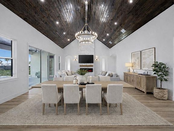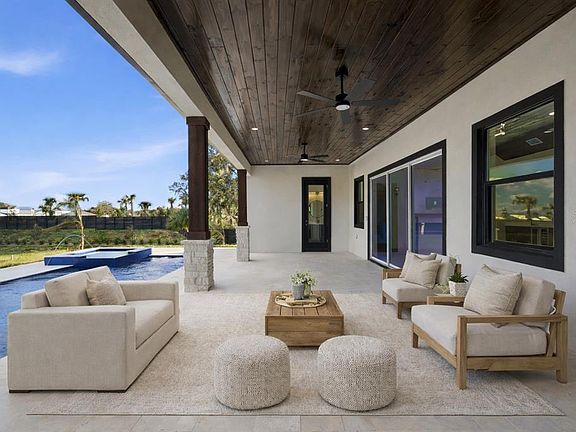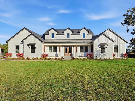 One or more photo(s) has been virtually staged. One or more photo(s) has been virtually staged. Set on 1.89 private acres in Plant City, this luxury new construction custom modern farmhouse offers the rare combination of space, privacy, and convenience — just 30 minutes from Tampa and approximately 40 minutes from Orlando, with easy access to major roadways while still enjoying a peaceful, country setting. Inside, nearly 3,400 square feet of thoughtfully designed living space includes 4 bedrooms and 4.5 baths, finished with refined materials and intentional detail throughout. The open-concept living area makes a striking first impression with tongue-and-groove ceilings soaring to an 18-foot peak, an electric fireplace with stone surround, and a wet bar with wine refrigerator — ideal for both everyday living and entertaining. The kitchen is a true centerpiece, featuring Taj Mahal countertops, bronze-accented oak cabinetry, a concealed walk-in pantry, and a generous 12-foot island with eat-in seating. High-end appliances include a porcelain sink, microwave drawer, double oven, and a 36” gas cooktop with custom vent, creating a space that is as functional as it is beautiful. The primary suite offers a private retreat with a spa-inspired bath showcasing slab tile, a double shower with rain head, a freestanding soaking tub, a dedicated vanity area, and a spacious walk-in closet. Additional highlights include luxury vinyl plank flooring throughout the main living areas, tile baths, a dedicated office, a laundry room with pet wash station, custom closets, and a three-car garage. Outdoor living is equally impressive, anchored by a limestone-finished lanai and pool deck featuring a heated pool with fountain features, sun shelf, hot tub, and a fully equipped outdoor kitchen with concrete countertops, a 36” gas grill, sink, and under-counter refrigerator. A stone-paved driveway, real stone and cedar porch details, mostly fenced grounds with stone fence columns, no HOA, and agricultural zoning offering flexibility for horses or a hobby farm complete this exceptional property. A rare opportunity to enjoy luxury acreage living with the convenience of Tampa Bay and Central Florida close at hand.