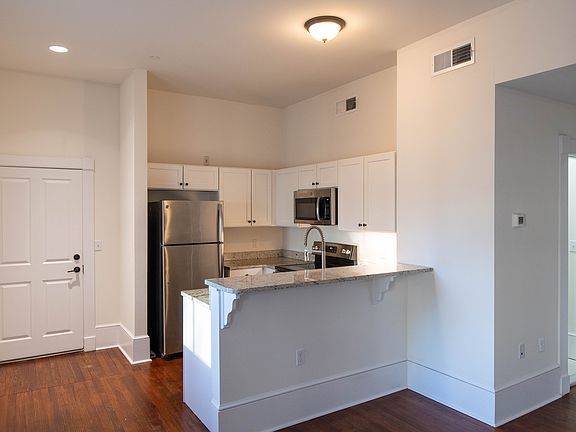 This charming 2 bedroom apartment was part of a mansion built in 1845 until it was brought back to life and converted into 15 apartments. Includes one bathroom, washer and dryer, and one assigned parking space (more spaces available). This apartment faces north, overlooking the Hampden Mill Courtyard. Renters responsible for all utilities. Pets allowed with breed restrictions, pet fee applies. No smoking on property. Parking available on site, (1) parking space is included in monthly rent. Landlord accepts reusable tenant screening report.