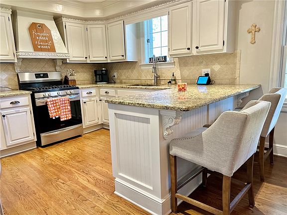 Meticulously maintained tutor home nestled on a serene 1-acre lot, this charming residence offers the perfect blend of comfort and functionality. Greeted by the OPEN expansive KITCHEN,LIVING & DINNING areas w/ gleaming hardwood floors throughout. Eat-in kitchen w/ custom wood painted cabinets, granite countertops & gas stove. The sun porch is a versatile space, perfect for a home office or workout room. A wood burning fireplace offers a cozy focal point to the 2nd family living area with an abundance of natural light. Built in staircase draws adds a unique touch as you make your way upstairs to 2 sweeping bedrooms w ample closet space. High ceilings make the comfortable owners bdrm, w/walk in closets. 3 fully remodeled bths, 1 on each level for ease. Finished basement offers endless possibilities & fresh laundry room. Outside, 3-car detached garage w/ .5 bath, while the privacy patio/deck w gas grill connect & a rustic firepit area creates a cozy spot for gatherings each season.