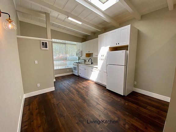 This new studio/1 bathroom is down the street from the vibrant Fruitvale District! The kitchen has white cabinets with loads of space, a chef's dream. There is a sleeping alcove separate from the kitchen. The bathroom has a small vanity and standup shower. Mirrored closet for hanging items and a small cabinet up high for long term storage. The unit has deep brown wood floors and an exposed beam ceiling with skylights. Fantastic location with shopping, restaurants, and groceries up the street. Easy access throughout the Bay Area, nowhere you cannot be in a flash. Shared coin-operated laundry onsite. The unit is located on Fruitvale Avenue and receives street noise daily. Water, garbage, and PG&E included; you pay cable/internet. No pets allowed. Street parking only. Security deposit is $1395.00 Available for a 1-year lease. Property owner requests only applicants who can start a lease on or before May 1st. Walk score 88 Transit score 57 Bike score 62