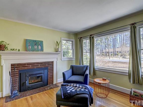 Adorable ALL BRICK ranch w/ bsmt in prime Durham locale. Loaded w/ updates! New HVAC 12/17. New water heater 2014. New metal roof 2012. Newer windows. Smooth ceilings. Large living rm features wood stove. Formal dining. bright & open kitchen offers cork flooring, concrete countertops, s/s apps, tile b-splash & under cab lights. Hwds thruout most of home. Updated bath has marble top dual vanity & tiled tub/shower. Lower level family rm w/ wood burning fp & bamboo floors. Tons of storage. Fantastic backyard
