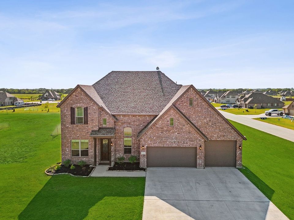 Stunning 1-acre estate by Stonehollow located on a cul-de-sac in The Trails of Blue Ridge! Get away and experience the peace of the country. Exclusive access to a 132 acre Nature Preserve with hiking and ATV trails, campsites, and a private fishing lake featuring a dock. Experience luxury living throughout, with an open and bright layout. Enjoy the gourmet island kitchen with breakfast bar, double oven, butler's pantry, and granite countertops. Upgrades include; curved staircase, premium granite, wood plank tile flooring, 5.25 inch baseboards, and more. First floor Primary Suite with spa-like bath includes a separate shower, deep bathtub, double vanities, and large walk-in-closet. Stunning formal dining room boasts vaulted 2-story ceiling. The first floor includes a guest bedroom with ensuite bathroom and an office with french doors. Upstairs game room holds gorgeous views. Media room features a 100-inch projector screen. Enjoy the large backyard and open space. Spacious 5-car garage.