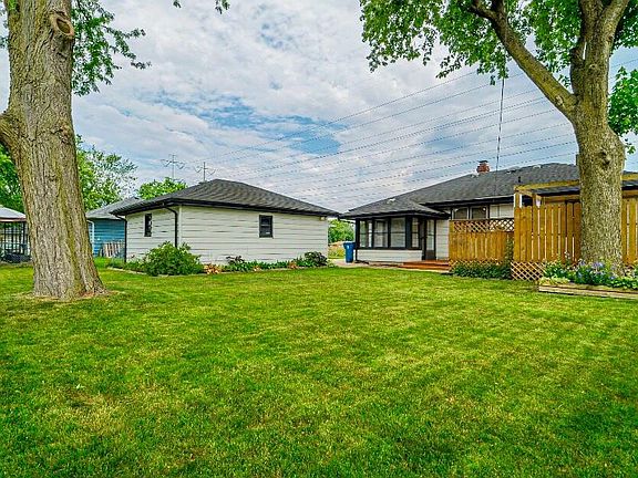 VERY NICE HOME WITHIN WALKING DISTANCE TO DOWNTOWN AND MUCH MORE!3 bedroom, original, oak hardwood floors in all bedrooms and possibly under living room carpet. Updated main bathroom, nice entry with coat closet and lovely, china hutch built-ins in the dining room. A large sunroom leads to the very spacious and well kept yard that has many perennials and 2 large shade trees. There is also a large deck and pergola! Great location just steps from the bike trail (across the street). Newer: hot water heater- 6-2024, washer- 2023, battery back up sump pump-8-2021. Finished basement with ENORMOUS laundry room and work room. A 1/2 bathroom has been started: toilet and shower buyer can finish and have a 2nd bathroom in this area. Home is being sold AS-IS please see attached addendum. Low taxes!