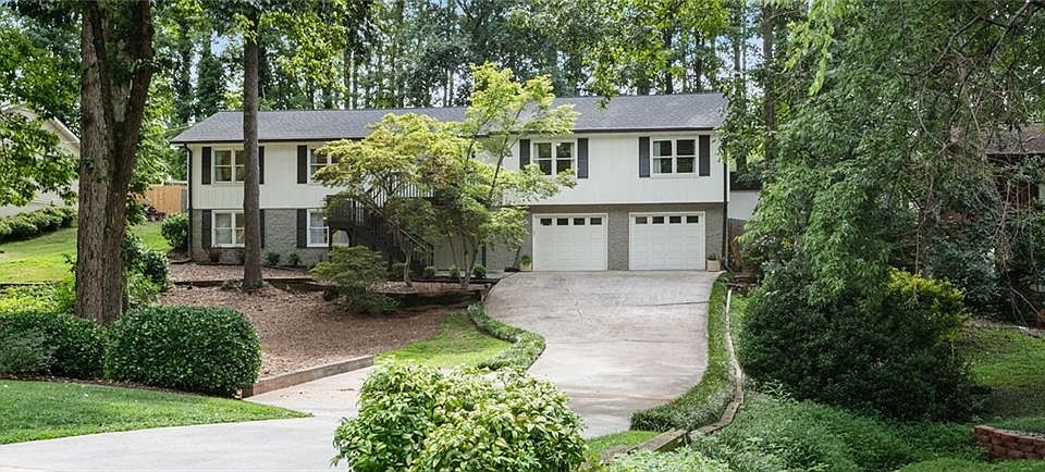 Experience this beautifully renovated home less than a mile from Pope High School and in the quiet Rolling Acres neighborhood! This modern raised ranch has the ultimate open-concept floor plan that's move in ready with a warm and expansive living area, with vaulted ceilings and flows effortlessly into a gourmet kitchen and dining room. Natural light fills every corner of the living room with an abundance of thoughtfully placed windows, skylights and a cozy fireplace. The newly renovated kitchen features state-of-the-art stainless steel appliances, custom cabinetry, quartz countertops, and a spacious island. A separate dining room is perfect for your family gatherings. Retreat to a serene master bedroom with vaulted ceilings and a spa-like ensuite bathroom with dual vanities, modern fixtures, new walk-in shower and quartz countertops. Also on the main level, you'll find two generously sized secondary bedrooms which share an updated hall bath. Don't miss the many renovations and upgrades, including new luxury vinyl plank floors, exterior and interior paint with custom colors, new roof, bathrooms, carpet, lighting, hardware, sod, gutters and gutter guards. Enjoy all the benefits of one additional bedroom and one full bath on the terrace level and two extra rooms that are versatile and can be used as guest rooms, a gym, home office, playroom, or movie room. Step outside into the backyard where you'll find the perfect getaway to relax and spend time with family and friends. Amenities include a spacious two-car garage, and ample storage throughout the home and in the backyard shed with electricity. Homeowners can join The Pines Swim Club within the neighborhood. You're also only a short drive away to downtown Roswell, Avenue East Cobb, and many local parks. This is the home you and your family have been dreaming about!