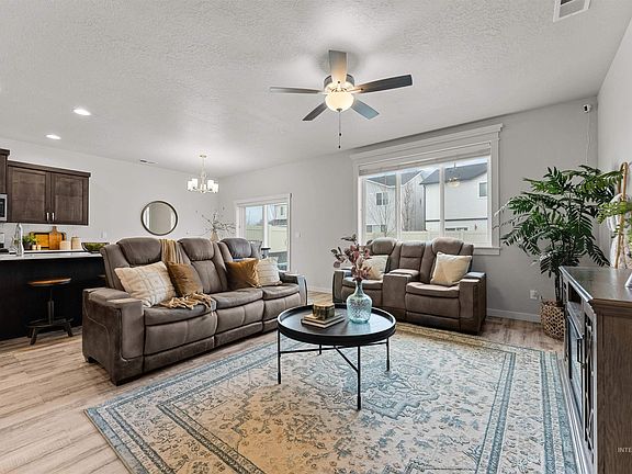 Welcome to the Biltmore Floorplan built by Blackrock Homes. A collection of modern homes designed for Low Maintenance Living. This home has an East-facing backyard. Bright and airy with custom stained cabinets and stone countertops. The foyer is defined by an architectural header before opening to a large great room. Beautiful LVP flooring runs from the foyer and throughout the high traffic areas on the main level, encircling the great room area. You will love the convenience of a main level Tech Center w/ built-in desk, upper cabinets & closet. Master bedroom is upstairs w/ large dual vanity + 2 more secondary bedrooms and a large loft that flexes as a second TV area, craft/game center, or exercise space. Lots of storage with three linen closets in addition to the bedroom closets. Verado includes a private park, basketball court and playground. Excellent location- minutes to the Village in Meridian, Settlers Park, restaurants, shopping and more! Landscaping is maintained by HOA. Low Taxes!