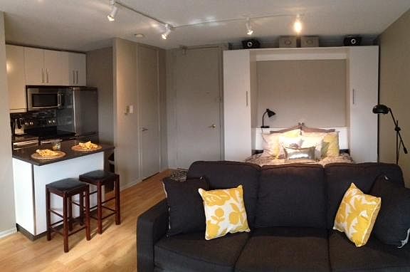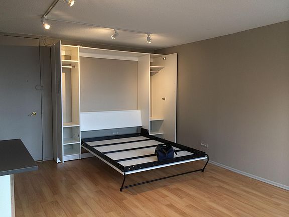 This bright, highly upgraded condo studio is perfectly located just a block from Belmont Harbor, Lincoln Park and Lakeview's shopping, restaurants and nightlife. Express buses a block away will take you downtown in 15 minutes. Internet and Cable are included. - Well maintained, secure 20 floor condominium building with on-site engineers - Bright, unobstructed 7th floor west view - Large walk-in closet (5' x 3.5') - Dimmable track lighting - Quartz counters in kitchen/bath - High-end stainless appliances incl. dishwasher and over-oven microwave with exhaust - Italian porcelain tile bath with radiant floor heat - Custom euro style wall bed (for queen size mattress) includes 2 additional side closets - easily folds away to provide flexible use of living space (15 x 13 ft.) - Blackout shades - Air conditioner - Programmable thermostats for main room and bath - Roof top pool, sun deck, and grills - Onsite laundry and cleaners - Bicycle storage FIRST MONTH'S RENT FREE - 6 WEEKS FREE RENT WITH 18 MONTH LEASE!. Parking is an additional $200/month and could be available 30 days after beginning of lease. No smoking or pets allowed.