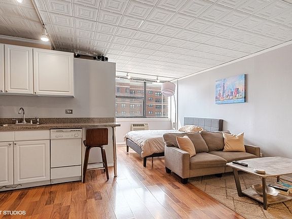 Spacious and light-filled west facing studio in East Lakeview steps from the lakefront & all of the restaurants and shops of Broadway! The home features an opened up & expanded white kitchen to allow for a dishwasher and extra cabinetry and countertop space. Larger layout provides for living space and bed space with walls of storage cabinetry. Bath with pedestal sink and neutral white tiles. Wood-toned laminate throughout. This home shows well! Building features include a sundeck and rooftop pool (season fee), updated laundry room, & bike room. Bus stops for the 134, 143, 151 & 156 are literally just outside the lobby door, with the 146 a mere 1.25 blocks away. Dog friendly building which is awesome since there is all that park space to run the dog around in! Note, buyer must live in the unit for 24 months before qualifying to be able to rent the unit out. Such a great home & great investment in a top tier location!