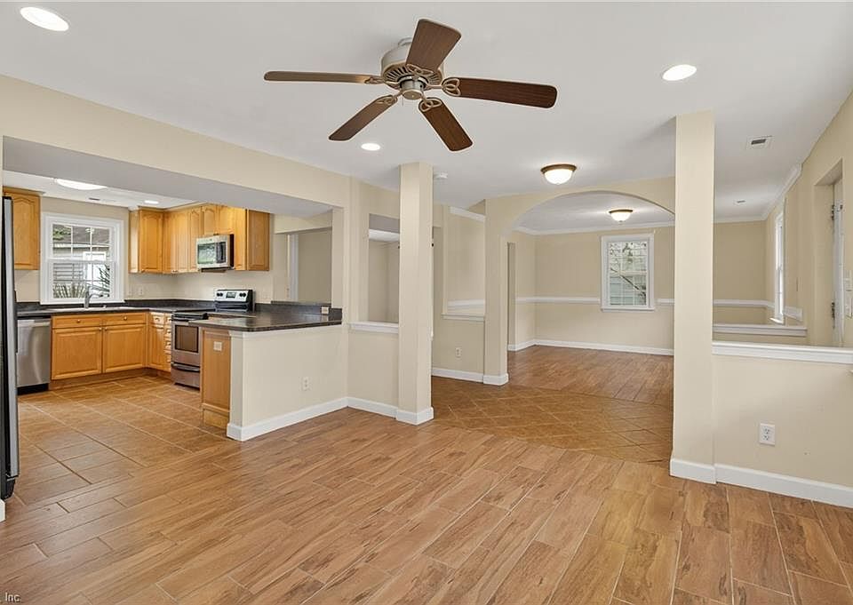 This spacious home offers three levels of comfortable living with two primary suites and a versatile open floor plan. The third-floor primary bedroom features vaulted ceilings, a sitting area, gas fireplace, and full bath. A second primary suite is located on the 2nd floor with its own balcony and full bath. Two additional bedrooms and another full bath complete the second level, along with the laundry area for added convenience. The main floor features an open concept design with den, living room, dining space, half bath, and a well-equipped kitchen with all appliances and an oversized pantry. Ideally located just down the street from the Lafayette River, this home combines comfort, functionality, and convenience. Avoid disappointment and future regret by viewing today!