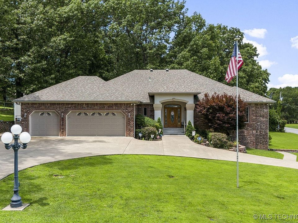 Located on a large corner lot in Buffalo Shores South, this beautiful home has 3 bedrooms, 2.5 bathrooms, an office, and a big flex room upstairs. The split floor plan has hardwood floors throughout, with carpet in one of the bedrooms. The primary suite has a walk-in closet, custom tile shower, and a jacuzzi tub. The kitchen offers granite counters, soft-close cabinets and drawers, double ovens, bar seating, and a nearby dining area. Other features include instant hot water, central vacuum, and an intercom system. Outside, you'll find a circle drive, 3-car garage with a storm shelter, RV hookups, a fenced yard, covered deck, and a climate-controlled workshop in the basement. Optional HOA. Call or message me for a tour!