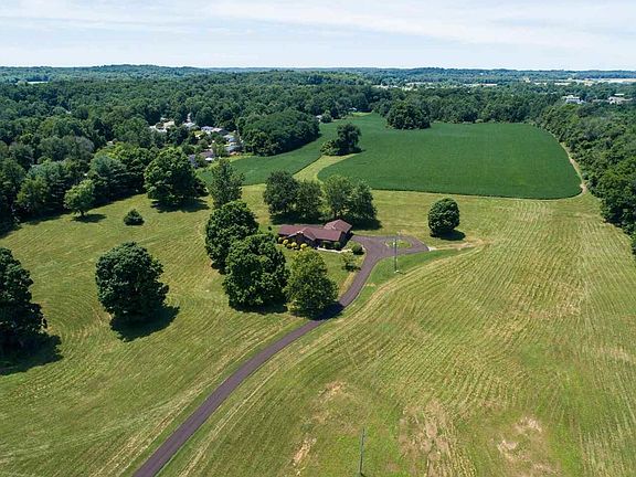 This 39-acre property offers a very comfortable and solidly built ranch home with an open, split bedroom floor plan, cathedral ceiling, gas log fireplace and a all-season sun-room that could be converted to a 3rd bedroom if desired. The bright and open great room welcomes you into the home and is so convenient to the super spacious kitchen. All of your guests can sit comfortably around the large breakfast bar that separates the kitchen from the living room. The kitchen is fully equipped with an electric cook-top, built-in oven & microwave, refrigerator, dishwasher and disposal. Both of the bedrooms feature en-suite baths; one has a tub/shower combo, the other features a stand-up shower. Both have walk-in closets. Off the kitchen is a sizable laundry room and a powder room. The all-season sun room features a brick accent wall and access to the outdoors. The driveway was just recently repaved with fresh asphalt and ends at the attached 2 car garage. There is a 40x30 pole building plus a 16x10 yard shed with workbench. Great possibilities for horses, goats, etc. There are 3 acres of woods and 16 of the remaining acres have been leased for crops by the neighbor. Last year's crop was soybeans, this year is corn. Future development possibilities. Average Utilities: Duke = 118, Vectren = 72, CBU = 35. *Be sure and check out the virtual tour that includes a drone video of this spectacular property! *As you enter the driveway, to the immediate right you will notice 2 impressions in the ground. The first one closest to Leonard Springs Rd was blasted out by the previous owner to create drainage and the second one was previously a pond. A liner would need to be used to re-establish the pond since the blasting caused a crack.