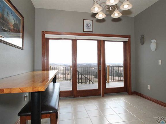 This home is perched overlooking the rolling countryside and Big Sioux River Valley. The design & layout bring nature into this warm and inviting home. Perfect for entertaining - the main floor mingles the Kitchen-Living & Formal Dining rooms. The relaxing view all the way to Larchwood IA can be observed from the outside deck or even from the indoors thru the LARGE Anderson windows. The master suite has cork flooring, access to the deck, Her & His walk-in closets and a bath with tiled shower and separate sinks and vanities. Opposite the master on the main level are 2 bedrooms joined by Jack & Jill baths. Also included is a main floor laundry. The lower level is ready for activity with a family room, multi-purpose rec room, office area and a kitchen/dining kitchenette. The walkout lower level also includes 2 bedrooms and 2 full baths. There is plenty of room for your stuff in the large storage/utility area with a private stairway access to the 25x41 garage.