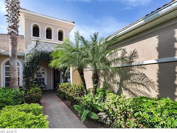 Spectacular Villa Home with Golf Course Views & Rarely available 'Sienna Floor Plan' on the 5th Fairway. Step into arched doorways with much detail, includes custom tray ceilings with accented lighting & crowning molding, plantation shutters all throughout, tile in every room except 3rd bedroom/den which is wood flooring. Amazing spacious granite kitchen w/ center island, extra side built-in serving console for extra storage, stainless appliances, upgraded wood cabinetry w/ crown molding and under counter lightening, transom windows for extra lighting. Built-in entertainment center in great room with pocketing sliders leading out to paver pool & spa lanai which is heated with electric and solar controlled by Aqua Link system. Master suite offers his/her walk-in closets, huge walk-in shower with bench seat & soaking tub. Plenty of storage with built-ins in closets, and cabinets and storage shelves in Garage. Hurricane shutters. This is a fabulous villa home!
