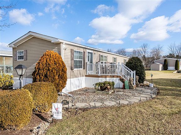 Lovingly cared for 2008 Commodore home in Indian Creek Village-Lower Macungie Township. Living Room, Kitchen & Hallway walls are drywalled. Vaulted ceilings. Eat in kitchen. LG Dishwasher replaced 2024. Month old LG stack washer/dryer unit with transferable warranty. Roof replaced in 2020. Wonderful 20 x 8 Trex deck and landscaping to enjoy while outdoors. Large storage shed. 2 car off street parking pad.