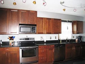 Beautiful remodeled kitchen & baths, jetted tub, hardwood floors in kitchen & dining room, vinyl windows & sliding doors since 2008! Vaulted ceilings in living & family rooms. Versatile living room currently used as an office, could be a rec room. Woodburning fireplace. Large 2nd bedroom fits a king bed. 2007 - new carpet throughout & tiled foyer. Near parks, pool, golf, UMC & shopping.