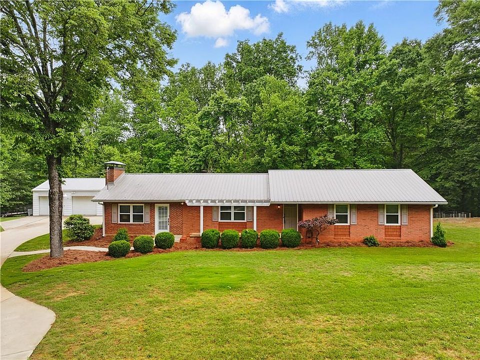 Priced below appraisal! Welcome home to this charming 3 bedroom, 2 bath brick ranch featuring a 2-car side entry garage, situated on a spacious 1.04-acre lot. The updated kitchen boasts custom cabinetry, new leathered granite countertops, and stainless steel appliances-perfect for entertaining. The owner's suite offers dual closets and a renovated bath with an oversized tiled shower. Additional features include updated bathrooms, gleaming red oak hardwood floors, new windows, updated plumbing, new water heater, gutters, and a durable metal roof. Enjoy the added bonus of a 24x30 metal workshop with two roll-up doors, insulation, power, and an attached air compressor-ideal for hobbyists or extra storage. A rare find that combines modern updates with functional space inside and out!