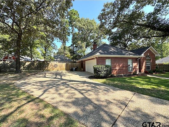 Make your way home to this immaculate, move-in ready house, located on an oversized lot in a cul de sac, and so close to shopping, schools, restaurants and more! The beautiful, mature hard wood trees shade the yard as you enter through the front door of the home. The spacious living room with ample room for seating and a brick surround wood burning fireplace welcomes you into the home. The oversized window in the living room naturally lights the room and overlooks the covered patio and back yard. The wide planked tile that looks like wood leads you through the house to the dining area and kitchen that is complete with a breakfast bar. A large laundry room is off of the kitchen and leads to the garage. The garage leads to an over-sized driveway with tons of room to park, and even includes a double sliding gate to store trailers, boats, extra cars in the back yard. The back yard provides plenty of shade from additional hard wood trees in the back of the house. A brick laid path leads you back to the back patio to enjoy evenings in peace and privacy. Back inside, the primary bedroom has plenty of room for large furniture. The master bathroom boasts 2 skylights recently replaced when the roof was replaced, plus TWO walk in closets for great storage! 2 other bedrooms and a full bathroom complete the downstairs. Upstairs, another large room with central air and a closet offers flexible space for a bedroom, office, playroom or other use! Also, this home offers a Tyler address with Whitehouse schools! You don't want to miss this amazing home with so many things to offer!