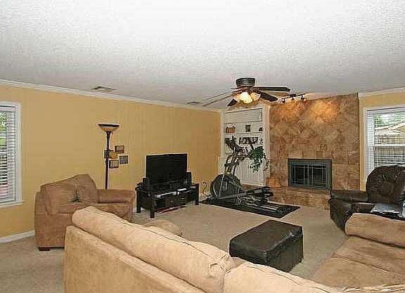 Spacious 4BR Located on Quiet Cul-De-Sac Lot.Very close to Peters Elementary School.Large Family Rm w/FP & Built-In Bookcase. Kit w/Lots of storage&counter space.Master BR down w/updated Master Bath. New Vinyl energy saving windows.Covered Patio&wood Deck