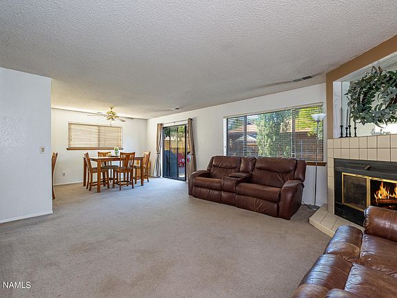 It's Your Turn to Own in Cheshire! Amazing, oversized mantle with gas fireplace and built-in shelving to display your photos/treasures is the focal point of your open living room. Connects to a good-sized kitchen/dining combo with breakfast bar and plenty of space. Incredible backyard offers amazing views of Mt. Elden and the peaks. Perfect Artificial Grass for easy-care solution that allows for games and fun as well as a perfect area for entertaining. A/C, Fresh paint, new interior doors, Water Heater (2020), new flooring, paint in split Primary Bathroom; new paint, flooring and vanity in Main Bathroom. 2-Car Garage has a utility sink, shelving and its own furnace. Additional driveway along the side of house. Do not miss this beautiful 3b/2b Cheshire home in the aspens. Won't last long.