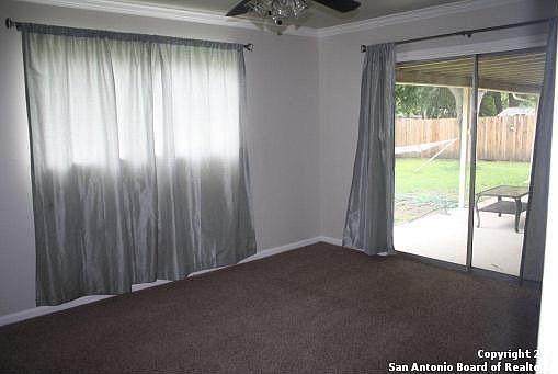 Beautiful Home with TONS of Upgrades. New Ceramic Tile and Carpet in 2008. New Roof in 2008! New Fence installed Nov 2009. Both bathrooms remodeled with new tub and fixtures. Updated lighting. Crown Molding throughout the house. Seperate Dining and Living Room. Ceiling Fans in all bedrooms! Freshly painted and ready to move in now. Have to see it to believe how beautiful this home is!!!! Won't last long so bring an offer before its gone!For more update information on this property please call 210-367-6024 or 210-454-8806 We have a list of foreclosures in this area and we can email them to you immediately.