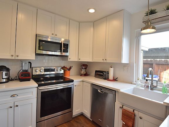Beautiful upgraded End Unit home in Pleasanton! Featuring 3 bedrooms and 1.5 bathrooms with private rear patio and nobody above or below you! Extremely convenient with 2 covered parking spots in front of your unit no stairs to climb! Large wrap around living room, dining area and open kitchen concept. Upgraded kitchen with newer cabinets, stainless steel appliances, subway tile backsplash, farmhouse sink, recessed lighting, laminate flooring, upgraded bathroom. Full Size Washer and Dryer. Storage closet in your private patio. Central heating and air conditioning. Community playground and basketball court. Extremely convenient location close to BART, TOP RATED Fairlands elementary school, close to downtown Pleasanton, Ace Train, Shopping, Parks, Restaurants and more! Refrigerator/Washer/Dryer included. Available for Move In: March 14, 2020 No Smoking in the home. No pets. No Smoking in the home.