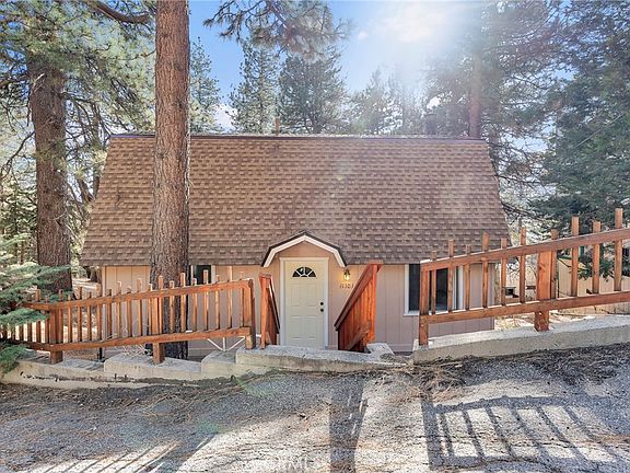 Discover your serene getaway in enchanting Running Springs!! This delightful gambrel-style home combines comfort and natural beauty. Walking through the door you'll enter into the living room, a few shorts steps you'll find the dining area flooded with an abundance of natural sunlight. Next you'll find the spacious kitchen with lots of cupboards! On the main level you'll also find a thoughtfully designed bathroom. As you walk up the spacious staircase you will find two cozy bedrooms with forest views from each. Recent enhancements include a newer roof. This property combines comfort and natural beauty, boasting breathtaking views of towering trees and a spacious backyard complete with playhouse/storage shed w/windows. Ideally situated a short distance from exciting attractions such as Snow Summit Ski Resort, the charming downtown of Running Springs, Sky Park at Santa's Village, and a multitude of hiking trails. This property is a dream for outdoor enthusiasts! A quick drive takes you to the scenic Lake Arrowhead Village. Whether you envision this as a weekend escape or a permanent residence, this inviting cabin is poised to become your perfect home away from home. Seize the opportunity to embrace the mountain lifestyle today!! Close to 330 for quick access down the hill.