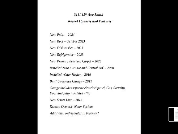 Old World charm meets all new roof, furnace, A/C, paint, dishwasher, along with newer water heater, and many updates. Spend your cool summer evenings on the upper level, 3-season porch overlooking the backyard. On the main level check out the 4-season porch/family room. Store all your "toys" and vehicles in the hard-to-find, oversized 2-car garage. Garage includes its own electric panel and gas with an insulated attic and security door! Third level expansion is a legal bedroom, but could be used as a home office or artist's studio. Property is situated on a quiet street, 1/2 block from Powderhorn Park with no through traffic!