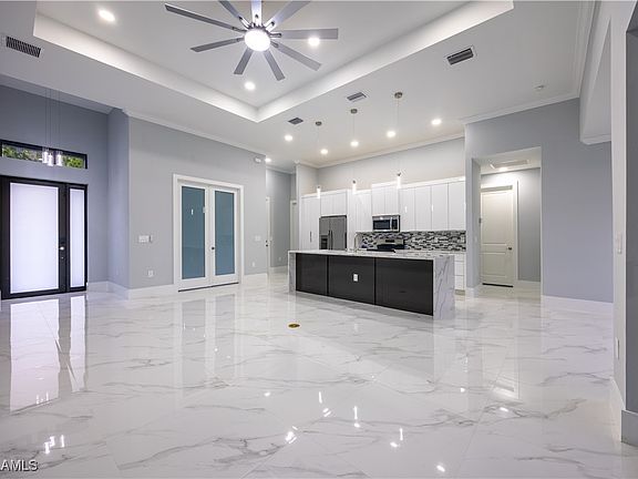 Welcome to your dream home! Built in the highly sought-after central Lehigh Acres area, it is located just minutes from SR 82 and I75. This New Construction offers 1,797 square feet of modern luxury. With 3 bedrooms + den, 2 baths, and an outdoor kitchen. Ceiling fans throughout. The master bedroom has two walk-in closets and a master bath with double sinks, tiled shower, and tub. Impact windows and doors provide safety and energy efficiency. Screened in lanai, epoxy floors in garage. Don't miss the chance to make this stunning home yours today!