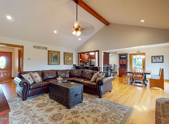 Looking for country living with all the conveniences of being minutes from shopping, dining and I-71? Then welcome home to this meticulously kept 3 bedroom, 3 bath ranch on five picturesque acres in the award winning Oldham County school district. This home features an updated kitchen with granite counter tops and stainless-steel appliances. The kitchen opens up to a great room. There is a separate dining room. The primary bathroom has been updated. Off the kitchen and primary bedroom, there is a trex deck that overlooks the beautiful built-in pool. There are hardwood floors throughout the first floor. The finished, walk-out basement features a multi-purpose room and a full bath. The walk-out basement leads to a covered sitting area with a view of the pool. The pictures say it all.