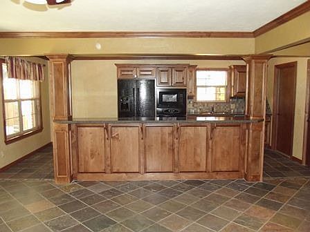 Nicely updated home in Briarwood Addition located on a corner lot. Entrance into this open floor plan reveals beautiful slate tiled floors thoughout the living, dining, kitchen areas and hallway and a cozy stone fireplace. This beautifully remodeled area also as oak baseboards and crown molding. The kitchen has been remodeled since 2007 with newer appliances, tiled backsplash and custom cabinets. The custom cabinets have the pull out drawers for easily storing and using pots and pans. The bedrooms are all freshly painted and some have recently replaced carpet. The Master bath has been updated with a beautiful walk in tiled shower. Outside, an in-ground pool is surrounded by an iron fence. The pool's liner, pump and cover were all replaced Summer 2012. Surrounding the back yard is a wood privacy fence also installed Summer 2012 and includes a large sliding gate that allows access to the carport. This 3 bedroom, 2 bath home is Move In Ready!! For more information on this home or other homes in Woodward, OK contact Smith & Co, Auction & Realty, Inc. Realtor Kindra Harrison at 580-216-0090