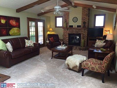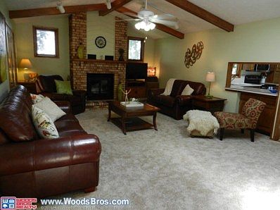 Bright and cheery 3+2(nc) bedroom ranch with fireplace, formal dining, main floor laundry, full finished basement, & 2 offices. 2 car attached garage has 10x20 storage, workbench & UGS. Sit on the deck and enjoy the open view!