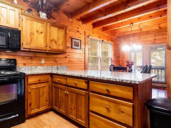 Great two story log cabin thats fully furnished, has tons of entertaining space, including the huge covered porches. Inside, this magnificent cabin has been tastefully updated to include hardwood flooring, granite in the kitchen, and modern furniture. Call today to schedule your private tour!