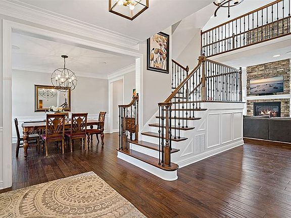 Gorgeous custom built home situated on cul-de-sac in desired Deerfield Ridge will stun you w/ its finishes. This masterpiece provides all the amenities & space needed for entertaining & relaxing. Upon entering, be captivated by the detailed trim & moldings, beautiful hardwoods & custom staircase/catwalk. Gourmet EIK w/ SS appliances, granite counters & island opens to FR w/ 2 story stone FP. Formal DR joins the EIK. Finishing the main level is formal LR, a BDR, full bath & mud room/pantry area off garage. 2nd level features the master BDR w/ gas FP & huge ensuite w/ joining walk-in closet. 2 additional BDRS w/ jack-n-jill bath & another BDR w/ ensuite + laundry complete 2nd level. 5th BDR & a full bath encompass the 3rd flr. The finished lower level has walk out gameroom w/ custom bar, a theater room, wine room, work out area & another full bath. Outside find private space for gatherings, a large deck off KIT to lawn w/ fire pit, a covered front porch & rear patio + 3 car garage.