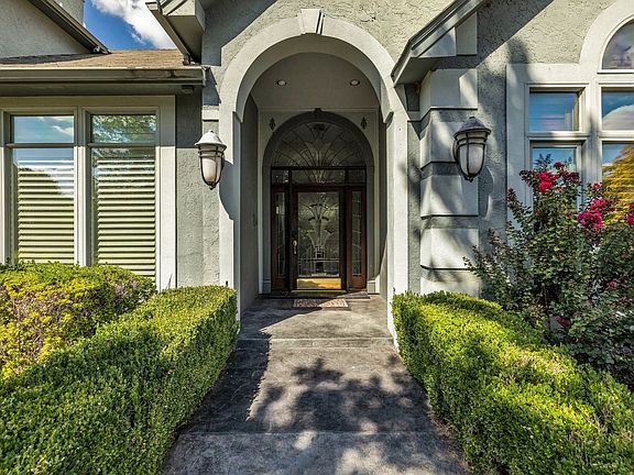 shelving, ideal for remote work or study. Entertain in the formal living and dining rooms, while upstairs, a spacious game room features a convenient wet bar for gatherings. The primary suite, located downstairs, impresses with a cozy fireplace, an additional sitting area, and a large bathroom suite complete with a HUGE walk-in closet. Step outside to an entertainer's paradise with an expansive patio overlooking an inviting yard complete with an inground pool and a putting green, creating the perfect setting for outdoor relaxation and enjoyment. Additional highlights include a massive 4+ car garage for car enthusiasts, a whole-home generator for peace of mind, and 12-hour manned security gates