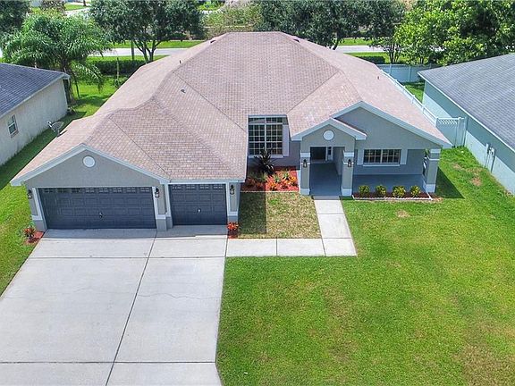 Welcome to a glorious estate in North Lakeland! As you drive up to this home you will notice it is one of few in the neighborhood with a 3 car garage and over sized drive way. As you walk in through the front door let the plank flooring take you on a tour of excellence with tall ceilings, updated fixtures, new A/C, and marble counters throughout the home. This 4 bedroom 3 bath home on just less than a quarter acre is turn key and ready for your style to perfect it. The home boast almost 2300 sq ft of heated living also includes an office when you first walk in the door. As you walk out to the backyard you are greeted with a screened lanai for the peaceful evenings after a long day. In the kitchen you have all new stainless steal appliances and marble counter tops. In the master bedroom you have 2 walk in closets leading down the hallway to your master bathroom with walk in shower and large garden tub. This home is ready for space to be filled, please do not hesitate to view today and bring an offer.