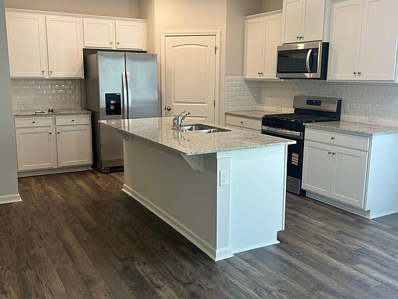 Welcome to our Greyton Springs community in Buford. This two-story plan features 3 bedrooms and 2.5 bathrooms. Enjoy beautiful, wooded views from your back patio. As you step off the front porch, a long foyer welcomes you and leads into the open-concept main living area. A large family room is the perfect place for family and friends to gather or for a quiet night with a book or movie. The family room flows seamlessly into the well-appointed kitchen with a center island, granite countertops, subway tile backsplash, white shaker-style cabinetry, and stainless-steel appliances. A dining area directly off the kitchen provides space for a dining table and opens onto the back deck or patio. There is also a half bathroom tucked away on the first floor. Up the stairs you'll turn from the landing into the primary suite. A spacious bedroom is complimented by the en suite bathroom featuring a separate tub and shower, dual vanity, water closet, linen closet, and a roomy walk-in closet. Across the landing you'll be led into an additional bedroom that's perfect for a game room or office space. 2 secondary bedrooms, the laundry room, and an additional bathroom, also with dual vanity, round out the upper floor. Copyright Georgia MLS. All rights reserved. Information is deemed reliable but not guaranteed.