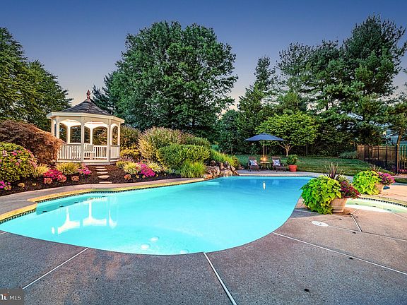 This extraordinary custom-built, stately brick colonial home is located in the desirable Worcester Township. Situated on nearly 2 acres of park-like, level lot, this property offers sophisticated living both inside and out. Enter along a tree-lined driveway, surrounded by lush, mature landscaping, to a home set far back from the road for enhanced privacy. Outside, discover the resort-style oasis of your dreams. The fully fenced expansive yard features a beautiful gunite in-ground heated pool with spa and waterfall, refined hardscape, Trex decking and paver patio spaces for al fresco dining or lounging, gorgeous landscaping, and a charming gazebo—perfect for entertaining or simply to restore and relax. Inside you’ll notice the flowing layout with high-end design details throughout. Elegant millwork, wide plank flooring, updated fixtures and finishes, vaulted ceilings, and oversized windows create a bright and airy atmosphere. The main floor includes a bedroom with a private patio entrance, a foyer, a full bathroom with a walk-in shower, a large closet, and access to the kitchenette—ideal for an in-law suite or dedicated guest suite. Cook an incredible meal in the stunning custom eat-in kitchen by Dilworth’s Custom Design, outfitted with Berwyn quartz countertops, double ovens, an oversized island with seating for five, brushed stainless steel appliances, and a matching bar with a beverage station. The kitchen boasts an abundance of cabinet space including a built-in pantry and large matching storage closets. Entertain or unwind in the great room, with soaring vaulted ceilings, a gas fireplace, expansive windows, and a kitchenette with granite counters. Adjacent to the kitchen, the family room offers an additional gathering space with a cozy brick wood fireplace. The main level also includes a roomy entry hall, formal dining room, half bath, spacious laundry room, and access to the side-loading two-car garage. Upstairs, the luxurious primary bedroom suite features a sitting area and an elegant newly remodeled en-suite bath with a skylight, high-end fixtures, dual sinks, a tub and tiled shower, and a walk-in closet. Three additional bedrooms, an updated hall bath, and a huge walk-up attic complete the second level. Downstairs, the large basement with Bilco doors has plenty of room for storage and is awaiting your finishing touches. Being sold by the original owners, this meticulously maintained and extensively updated residence is a remarkable find. Its prime location, situated within the highly regarded Methacton School District, offers nearby recreation a short walk away at Heebner Park, the walking trails, and easy access to the PA turnpike and other main roadways. Additional highlights include a newer central air system with dual-zone climate control. Experience exceptional living in Worcester Township by making this beautiful home your very own. Call today for a private tour.
