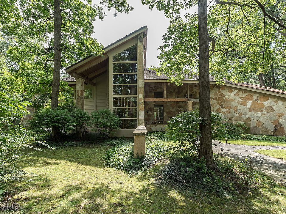 Remarkable Oak Brook beauty designed by award winning Brent Kendle. A comfortable modern home that celebrates nature with its extensive use of glass, stone and wood. Soaring roof forms and large windows provide natural light and dramatic views of the 1.25 acre lot. The breathtaking living room & dining room share a 27' high Fond Du Lac Stone, two-sided fireplace. The 3 story atrium is spectacular & provides a serene space to relax. 4 bedrooms and 4.1 baths. The timeless design of the gourmet kitchen has high end stainless steel appliances, custom hickory cabinets, island, walk-in pantry & sliders out to atrium. Luxury master suite has fireplace & sliders to private balcony. Large soaking tub, walk-in shower, & huge walk-in closet. 2nd fl laundry & office. So much space to entertain in the walk-out basement w/ movie viewing area, recreational room, bar/2nd kitchen, full bathroom & storage areas. Gated community. Private wooded lot with mature trees. Mudroom and 3 car heated garage.