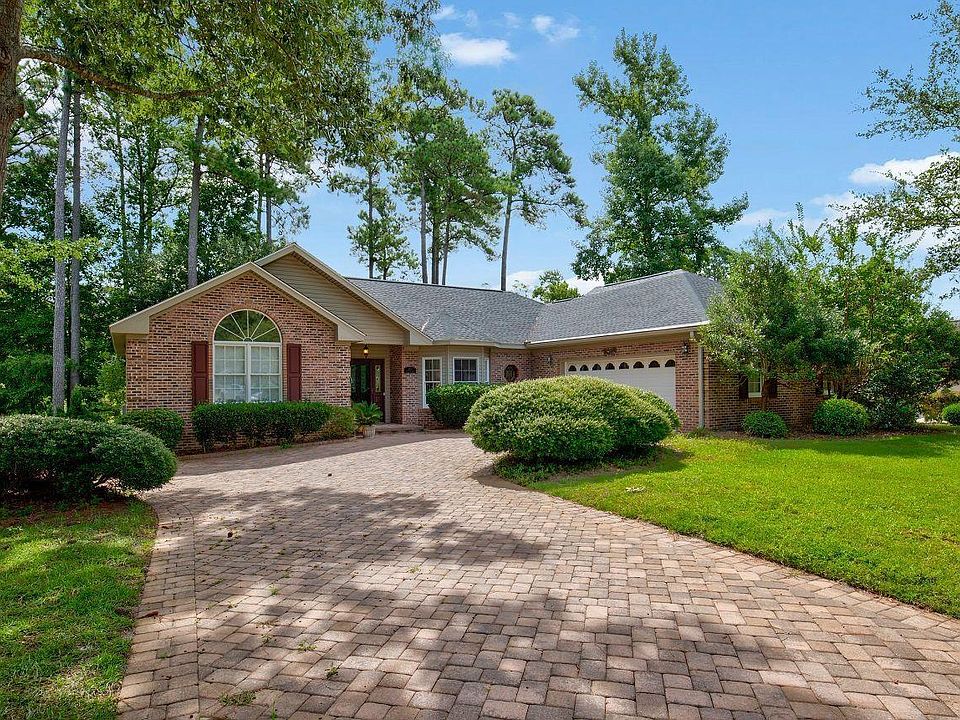 Incredible views of the 17th green and pond are an exquisite backdrop to this sprawling one level brick design in highly desirable River Hills. With 3 bedrooms and 2 baths, the open concept floor plan features many possibilities and offers volume and tray ceilings, crown mouldings, many windows, split bedrooms and huge garage. The spacious and bright kitchen is open to all public areas and includes abundant counter space and white cabinetry, breakfast bar and morning room. For those interested in a true master suite retreat, look no further - this one is oversized and includes two walk-in closets and a master bath with double sinks, separate shower and tub. There is a multi-purpose sunroom located off the kitchen that can easily be a used as a den/study/home office or playroom - it also has separate access to a rear deck. While we are on the subject of sunrooms, can we talk about the spectacular glassed rear sun porch - talk about a room with a view! Not only is it accessible from the great room through sliding glass doors, but also from the master suite and kitchen for easy entertaining. New roof and HVAC in 2016. This one owner home has lovingly been cared for and is situated on an estate sized homesite with an impressive recently pavered driveway. Country Club amenities available separately. You won't want to miss it.