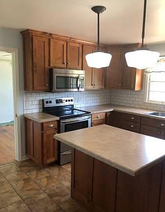 3 large bedrooms, 1 and 1/2 baths. Hardwood floors and tile throughout. Gas fireplace in living room. Two car attached garage. One year lease. Pet negotiable w/ pet deposit. Tenant pays utilities. Natural gas central heat. Central A/C