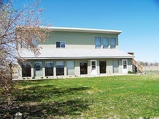 This solar, energy efficient home offers fabulous views of the mountains and the feel of country living close to town. Enjoy this peaceful setting in this country subdivision surrounded by the wild west that Wyoming has to offer. The 4.58 acres offers room to roam and could also be set up for horses. This home has maintenance free steel siding and an absolutely gorgeous interior. New stamped concrete sidewalk along the front of the home. The roomy entry has plenty of room to sit down and take your shoes off and get ready to relax. The entry wall is tumbled marble accented with marble stone. The solar garden room is excellent for plants, starting your seedlings and just sitting down with a good book and enjoying the sun and beautiful views of the mountains. Notice the decorative stone tile trimming the windows. There are 4 bedrooms and 1.75 baths on the main level. All of the floors on the main level are porcelain tile with one of the bedrooms accented with stone tile. The master bedroom has a ceiling fan, walk-in closet and exit to the front yard. The master bath is tumbled marble with rain forest marble accents. The built-in drawers have tumbled marble facing with Abalone pulls. Absolutely exquisite. The full guest bath is done with hand mold stone with decorative wild life prints, granite pedestal and vessel sink. The family room is just right and has a wood stove with a catalytic converter which makes for clean burning. There is plenty of storage on the main level including linen closet, storage closet and a built-in bookcase. The laundry room is on the main level and offers entrance to the garage. The window seals on the main floor are granite. The stairwell is a masterpiece itself. The upper floor is great for entertaining and spans the length of the home. It is very open with raised ceilings. The large living/game room has plenty of room for a pool table and sitting area. Accents include track lighting and decorative stone tile trimming the windows. The living
