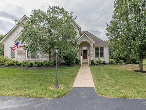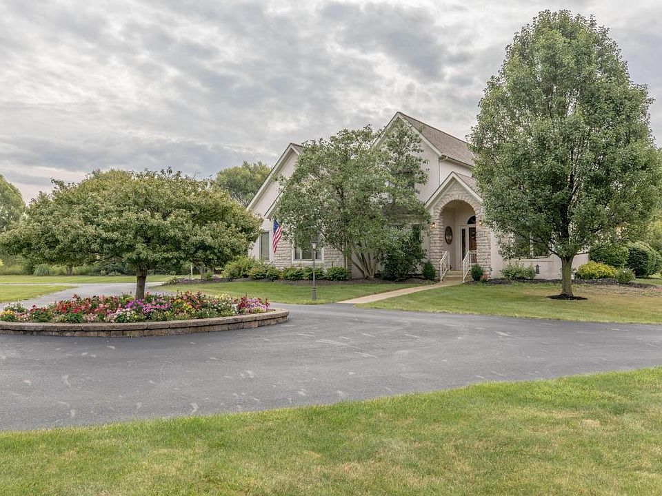 3744 sq.ft custom built home on 5 acres across from Royal American Links Golf Course. Private retreat but a short drive to essentials. Original owners=pristine condition! First floor master suite, utility rm, 1/2 BA, kitchen with eating space which opens to great rm with fireplace, and dining rm which allows for large gatherings. More space in adjoining outdoor entertaining area includes a Pergolo,columns,pavers, with amazing view. Den off foyer. 2 bedrooms with bath on second floor for family or guests. Lower level with walkup exit includes large rec. room, with bar, fitness or guest room, 1/2 BA. and more storage. Custom built in bookshelves, cabinetry on both floors. Den has closet, could be 4th bedroom with added door which is on 1st fl.30x40 pole barn, Generator,safe,grill inc