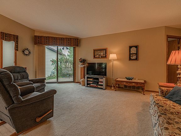 WONDERFUL RANCH STYLE TWIN HOME PRICED TO SELL! This is a quality build through and through. Over 1300 Sq. Ft. of open, spacious main floor living. The kitchen is exquisite with custom made HAGER CABINETS, roll outs and a super sized MAYTAG FRIDGE/FREEZER! There are plenty of cabinets and counter top space. You will enter under a Cathedral Ceiling to a cheery, open floor plan. The grand living room features a sliding door that opens to a PRIVATE PATIO and lovely backyard. The Master Bedroom has dual closets, Master 3/4 Bath and a beautiful vanity. The Main Floor Laundry (washer/dryer included) adds tremendous convenience. Lower level (1,300 + Sq. Ft.) is unfinished and can be easily finished for added value, bedrooms, bathroom, and living space. There are egress windows, finished workshop area and plenty of storage. Plumbing for a LL bathroom has been stubbed in. Double garage is sheet rocked, insulated and has great shelving all around. All appliances, sprinkler system, Reverse Osmosis water system, and window treatments (some Hunter Douglas) are included. Newer singles. No association fees. Call your realtor today to come and see!