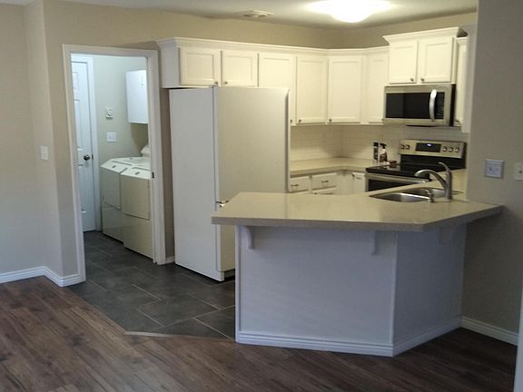 Cute, updated townhome. Within walking distance to grocery store, public transit, library. Large primary bedroom on main level, 2 more beds & storage upstairs. Hardwood throughout all downstairs, updated kitchen and paint. Wood window blinds. Vaulted living room with skylight. Lots of windows. 2 car garage. Great location! Quick commute to anywhere. Small, fenced back yard area. All utilities included except for gas, power, internet. Yardwork included. No smoking. Small dogs allowed, depending on size. $150 non-refundable deposit per pet. $25 month extra per pet. Maximum 2 pets. No application fee. First month's rent and deposit due upon signing lease.