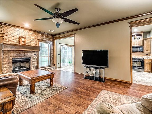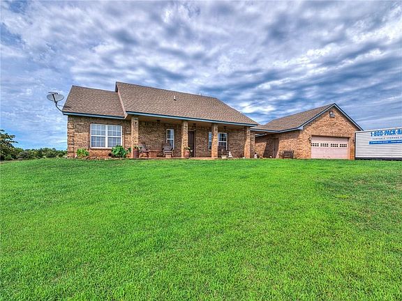 Completely custom built home sits on 10 acres in a quite peaceful setting, heavily wooded with 2 ponds! Your sure to see abundant wildlife. Perfect place to bring you livestock. PERFECT LOCATION! EASY access to I-44, I-35, IN 5 minutes. H.E. Bailey. Equipped with a double stemwall foundation, built to withstand earthquakes! . Master suite has separate shower and whirlpool tub, double sinks, granite countertops and walk in closet. Secondary bedroom has a built in study area and walk in closet. Large utility room with cabinets for storage. Enjoy the smell of a real wood burning fireplace in the living room. Your kitchen has plenty of cabinets and countertop space, granite, custom trim and breakfast bar. In the garage there is a climate controlled room, could be used for workout room, flex room or home office. Amazing opportunity to own a truly unique solid built, beautiful brick home on acreage. This home is very aggressively priced to sell fast!
