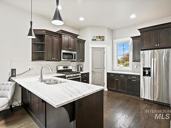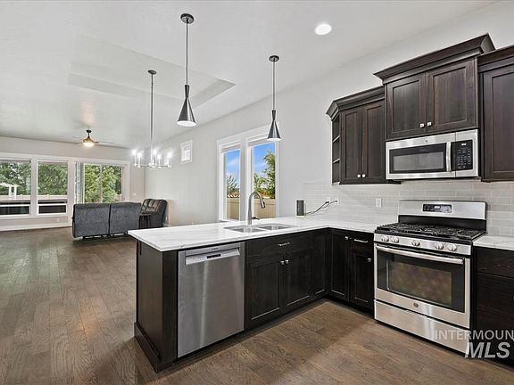 Welcome home to this stunning, sun-filled corner lot offering ideal single-level living! This 4-bed, 3.5-bath home features a bold entry way with marble/granite appearance tiled wall, open layout with hardwood laminate flooring throughout. A stylish kitchen showcasing quartz counters, stainless steel appliances, pantry, and breakfast bar that flows into the dining and living areas. Enjoy cozy evenings by the gas fireplace framed by built-in shelving, or step outside to the covered patio, hot tub, and fully fenced yard. The spacious primary suite includes a 4-piece bath and walk-in closet. Additional highlights include a Jack-and-Jill bath, and a climate-controlled garage with a mini-split HVAC system to create a perfect space for a gym or workspace. Close to Settlers and Tully Parks!