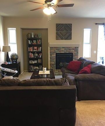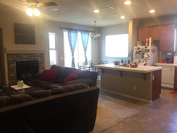 Awesome 4 bedroom 2 bathroom open floor plan home. Located on a corner lot in a newer neighborhood. Formal living & dining room, open concept kitchen with massive center island & breakfast bar, ample cabinets for storage, eat in kitchen with informal dining area open to the family room. Spacious family room has a brick faced fireplace with mantle, ceiling fan, bull nosed corners, high ceilings, custom interior paint, recessed lighting, oversized tile flooring & sliding glass doors to backyard. Master suite boasts double door entry, ceiling fan all in a light and bright room with high ceilings, large attached master bathroom boasts dual sinks, a separate oval tub & shower and huge walk in closet. There are 2 guest bedrooms with large closets and high ceilings, the 4th bedroom used as a den,