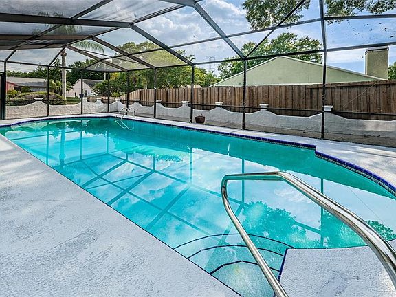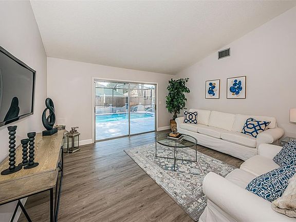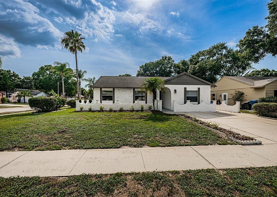 Welcome Home!!! Completely remodeled 3 bedroom, 2 bath pool home on a corner lot in the conveniently located Seven Springs area. Kitchen boasts new cabinetry, stainless steel appliances, quartz countertops, glass tile backsplash. Vinyl and tile flooring throughout the entire home. Split bedroom floor plan, vaulted ceilings and glass sliding doors lead you out to the spacious lanai and pool area. Conveniently located close to shopping, dining and schools.
