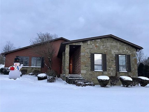 Move right into this lovely undated 3BR, 2 bath contemporary ranch style home. Front door leads into the living/dining area with two large picture windows, crown molding and beautiful new wood floors which were installed 2018. Family room is centrally located and includes stone fireplace, cathedral ceiling and French doors that lead to the patio. The kitchen has stainless steel appliances, plenty of storage and an island with seating. Completely remodeled master suite with large walk-in closet and bathroom with high-end finishing touches including dual vanity w soft close drawers, new water saver toilet and tile shower with glass door. Remodel also completed 2018. Full basement and two car attached garage. There is an additional 24 x 32 double car garage which is deep and will house your extra-long pick-up truck, boat, etc. Garage door openers for both. Electric heat, city water and sewage. House sits on .79 acre lot. Second lot behind house is .95 acre also includes 12 x 16 shed