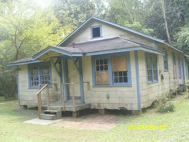 Exterior Features: Wood frame home on pillars, three tab shingle roof which will need to be replaced, soffit and fascia will need to repaired, replaced and painted, masonic siding will need to pressured washed, some repairs and painted and seats on very private lot. Interior Features: Four bedrooms and one bath, kitchen will need full renovation and appliance replacement. Evidence of termites, real hardwood floors, will need some painting and repairs