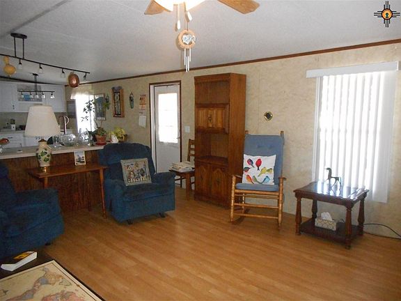 Ready to move into, is this 2007 Clayton 3 bedroom, 2 bath mobile home in Deming Estates, a 55+ community. This home is pride of ownership with lots of extras. Open and spacious living room, dining and kitchen area. Split floor plan to include Master bedroom with master bath and walk-in shower, walk in closet and lots of storage. The interior of the house has wood cabinets, water cut-offs at all indoor pipes, and Laminate floors. The exterior is freshly painted. There is a drip system in the front yard. A single carport is in the front yard and a double carport is in the back yard. The circle drive thru is a plus. This property has a garden area and large shed as well. This property is a HOA with yearly dues.
